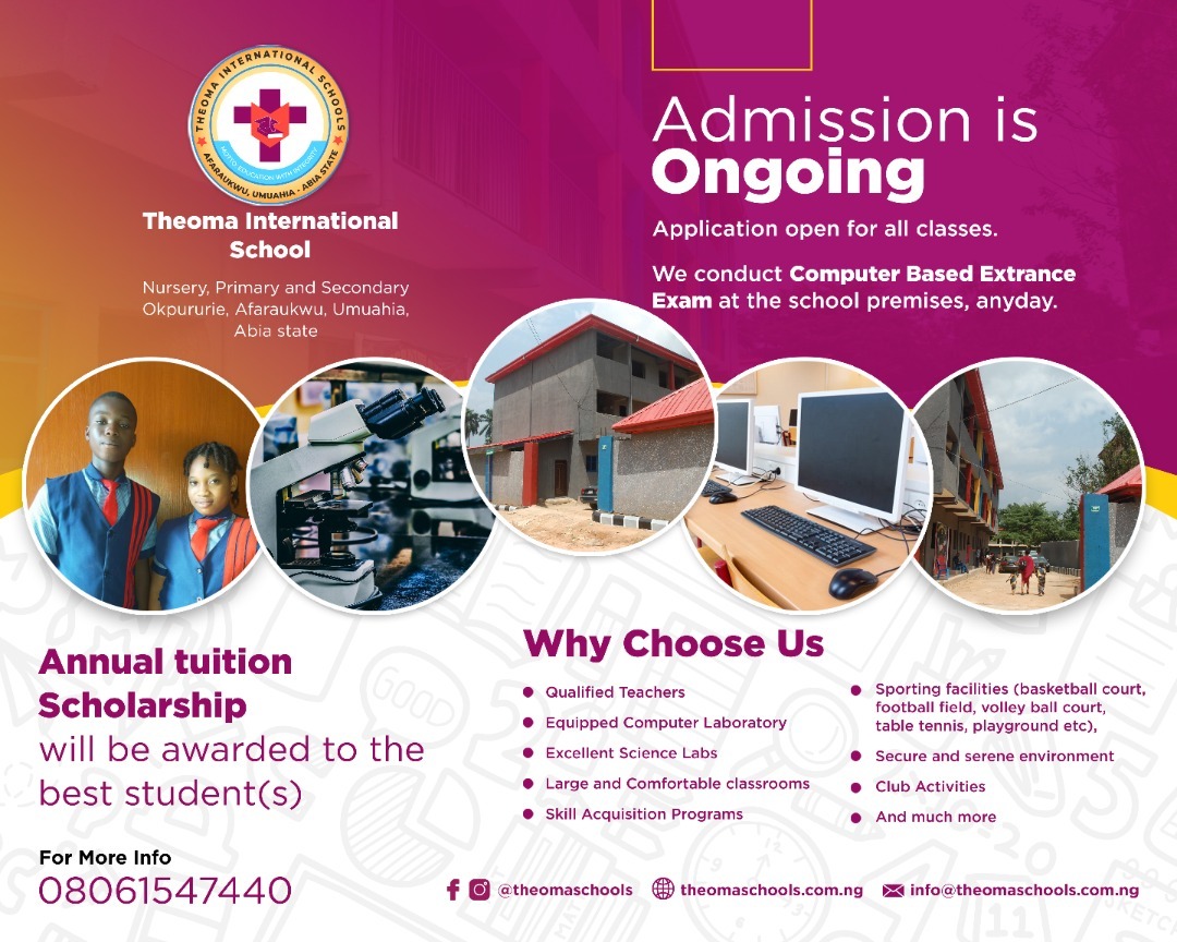 All students and parents of Theoma International College should be informed that the result of 2025/2026 1st Term has been published. Please you are required to complete all fee payment before checking your result.
